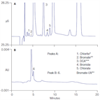 AN149: Determination of Chlorite, Bromate, Bromide, and Chlorate in Drinking Water by Ion Chromatography with an On-Line-Generated Postcolumn Reagent.